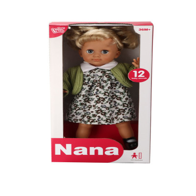 عروسة نانا بملابس أنيقة مطبوعة وز cardigan أخضر،